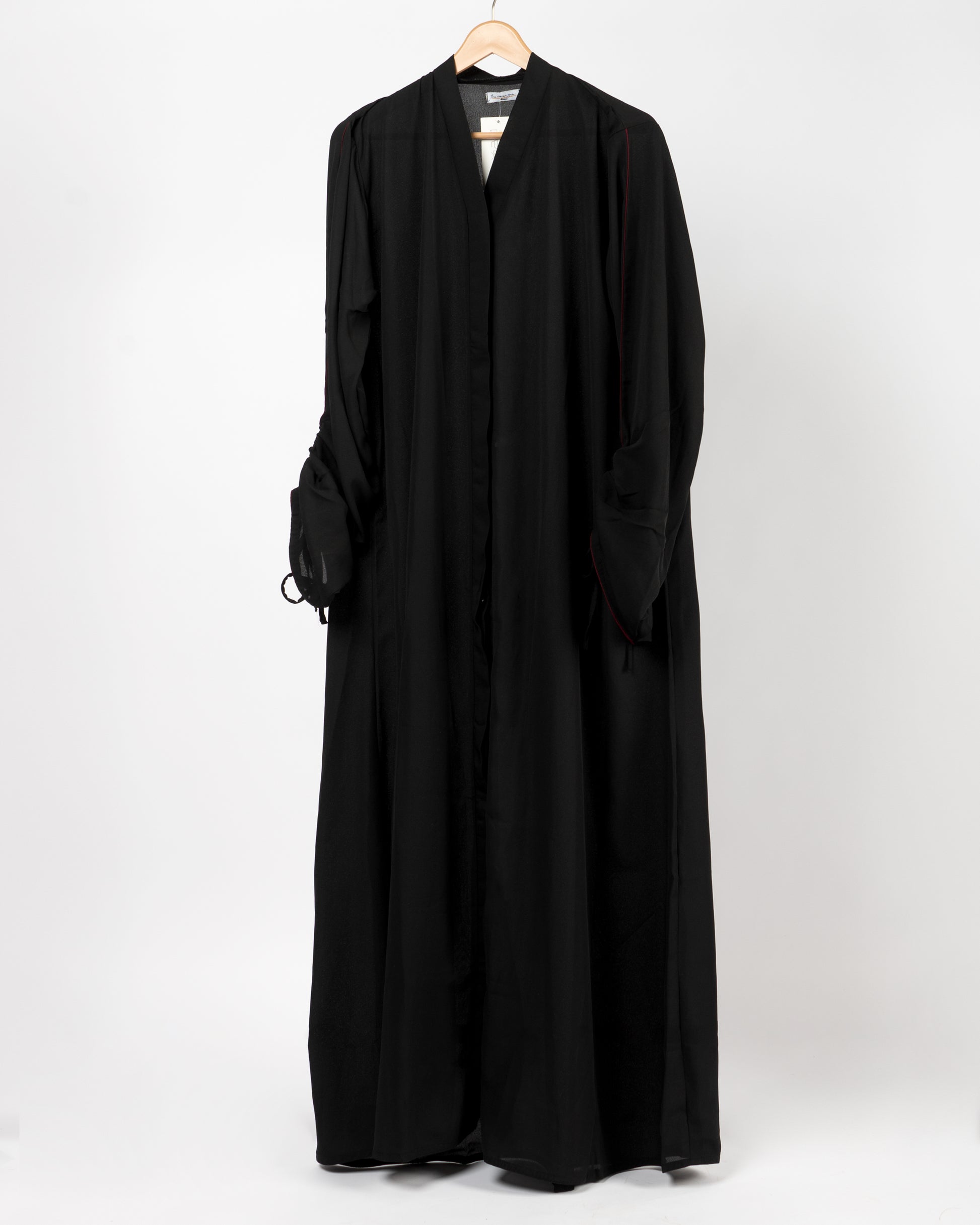 A front open abaya with buttons with sleeve dori details
